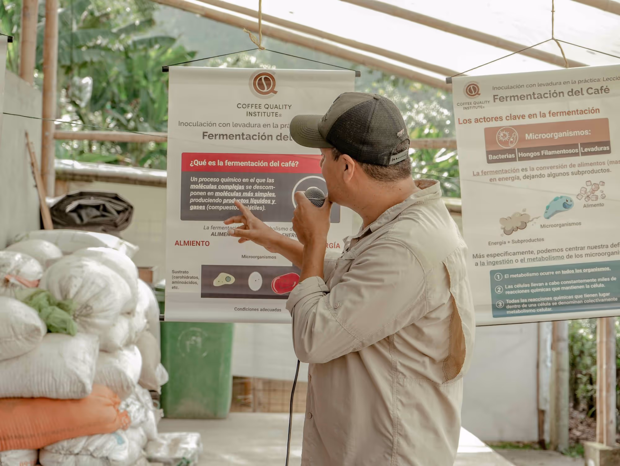 이 일일 실습 수업은 LALCAFÉ™의 후원으로 개발되었습니다. 학생들은 커피 발효에 영향을 미칠 수 있는 요소, 발효를 모니터링하는 방법, 접종제(이 경우 활성 건조 효모)를 적용하는 방법, 활성화 및 올바른 절차에 대해 배웁니다. ' 현장에서의 효모 접종 '은 수확 중 습식 제분소나 세척 스테이션에서 상업용 효모 사용의 모범 사례를 중심으로 진행되며, 발효에 관심이 있고 효모 기술, 특히 접종 기술을 배우고자 하는 산지 사람들을 대상으로 합니다.